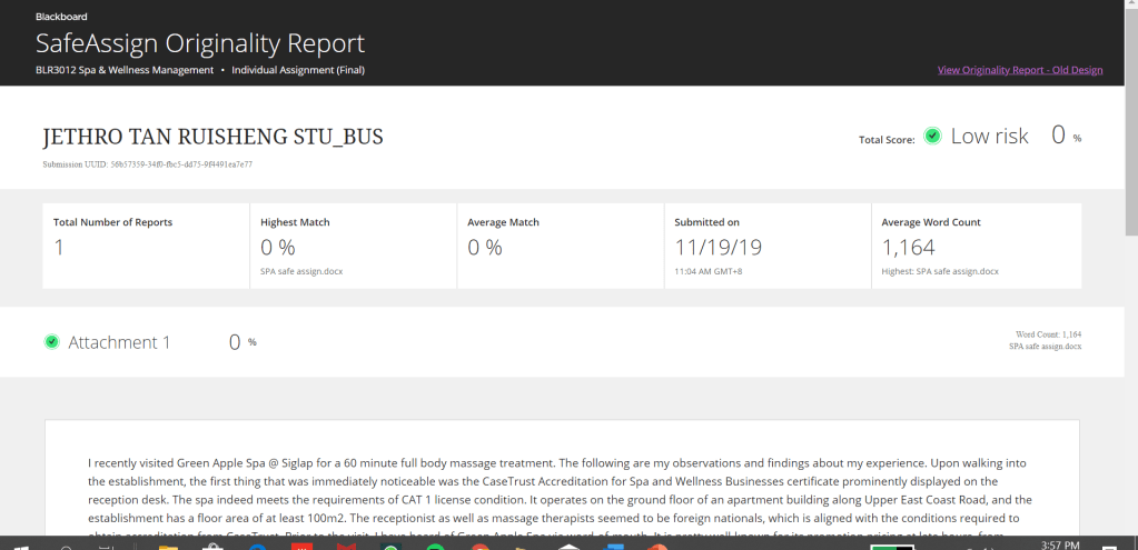 I recently visited Green Apple Spa @ Siglap for a 60 minute full body massage treatment. The following are my observations and findings about my experience. a. CaseTrust AccreditationUpon walking into the establishment, the first thing that was immediately noticeable was the CaseTrust Accreditation for Spa and Wellness Businesses certificate prominently displayed on the reception… Read more